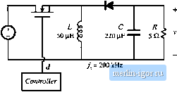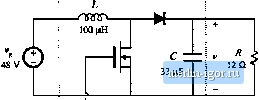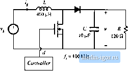 Строительный блокнот Introduction to electronics other important features. 9.19 Loss mechanisms in capacitors, such as dielectric loss and contact and foil resistance, can be modeled electrically using ал equivalent series resistance (esr). Capacitors whose dielectric materials exhibit a high dielectric constant, such as electrolytic capacitors, tantalum capacitors, and some types of multilayer ceramic capnciloi, typically exhibit relatively high esr. A buck converter contains a 1.6 mH inductor, and operates with a quiescent duty cycle of 0.5. Its output capacitor can be modeled as a 16 fiF capacitor in series with a 0.2 Q esr. The load resistance is 10 Я. The converter operates in continuous conduction mode. The quiescent input voltage is = 120 V. (a) Determine an analytical expression for the control-to-oatpat transferfunction ) of this converter. (b) Find analytical expressions for the salient features of (j(s). (c) Construct magnitude and phase asymptotes for (i,. Label the numerical values of all slopes and other important features. 8.19 Tlie LCC resonant inverter circuit contains the following transfer function: sC,R 1 + sRiCi + C2) + sLCi + juc (a) When C[ is sufficiently large, this transfer function can be expressed as an inverted pole and a qnadratic pole pair. Derive analytical expressions for the comer frequencies and Q-factor in this case, and sketch typical magnitude asymptotes. Determine analytical conditions for validiiy of your approximation. (b) When C2 is sufficiently large, the transfer function can be also expressed as an inverted pole and a quadratic pole pair. Derive analytical expressions for the corner frequencies and t-factor in this case, and sketch typical magnitude asymptotes. Determine analytical condidons for validity of your approximation in this case. (c) When C = and when the quadraiic poles have sufficiently high Q, then the transfer function can again be expressed as an inveried рю1е and a quadratic pole pair. Derive analytical expressions for the corner frequencies and (2-factor in this case, and sketch typical magnitude asymptotes. Determine analytical conditions for validity of your approximation in this case. 8J0 A two-section L-C filter has the following transfer functinn: 1 + .v The element values are: Я = 50 mfl C = 680 ilP Cj = 4.7 fiF Z, = 500 fill L = 50 fiH (a) Factor G{s) into approximate real and quadratic poles, as appropriate, Give analytical expressions for the salient features. Justify your approximation using the numerical element values. (b) Coiisiruct the magnitude and phase asympiotes of <7(.5). (c) It is desired to reduce the Q to 2, withont significantly changing the corner frequencies or other features of the response. It is possible to do this by changing only two element values. Specify how to accomplish this, 921 The boost converter of Fig. 8.72 operates in the continuous conducdon mode, with quiescent duty cycle D - 0.6. On semi-log axes, conslrutt the magnilude and phase Bode plots uf (a) the coQlri)l-to-oiJlpul iransfer funtlion Cfji). (1>) ihe line-(o-output imnsfer fiinttion (c) the oulpul impedance Ztv),and (d) ihe input impedance Z,p). On each plot, label the corner frequencies and asymptotes. Boost converter Fig. 8.72 Boo.4t converter of Problem 8.21. ![]() d / = 200 kHz Controller 8.22 The forward converter of Fig. 8.73 operates in the continuous conduction mode, with the quiescent val- ues = 3S0 Vand F = 28 V. The transformer turns ratio is = 4.5, On semi-log axes, construct the magnitudeandphase Bode plots of (a) the control-to-output transfer function G J.v), and (b) the line-tc)-()utput transfer function ti-W- On each plot, label the corner frequencies and asymptotes. Hint: otherthan introduction of the turns ratio [/fr J, die transformer does not significantly affect the small-signal behavior of the forward converter. H- ЛППГ 500 (iH Controller J= 150 кНг Ftg, 8,73 Forward corvener of Problem 8.22. 8J3 The boost converter of Fig. 8.74 operates in the continuous conductiim mode, with the following quiescent values: - 120 V, 1 = 300 V, It is desired lo control the converter input current waveform, and hence it is necessary to determine the small-signal transfer func lion J(s) (a) Derive an analytical expression for j(s). Express all poles and zeioes in normalized standard forai, and give analytical expressons for the cnrner frequencies!, g-factor, and dc gain. (b) On semi-log axes, coiisiruct the Bode plot for the magnitude and pha.se of 6;,/s). Fig. S.74 Uooal coiiveitei of Problem 8.23. ![]() 8J4 The btick-boost converter of Fig. .75 operates in the continuous conduction mode, with the following quiescent values; = 48 V, V=-24Y On semi-log axes, constmct the magnitude and phase Bode plots of: (a) the control-to-outpui transferfunction G/.t), and (b) tbe output impedance (1). On each plot, label the corner frequencies and asymptotes as appropriate. Fig. Я.75 Buck-boost of ProbieiTi 8.24. ![]() |