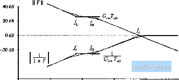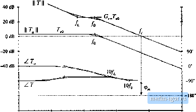 Строительный блокнот Introduction to electronics ![]() i 11: 10 Hz 100 Hi IkHi 100 kHz Fig. 9.19 Compeiibation nf a loop gain containing a single pole, using a kig (Pf) compensator. The loop gain magnitude is incicased. (9.39) The compensator transfer function t)f Eq. (9.38) is used, so that the compensated lt)op gain is T(s)-TJs)GJ,s:). Magnitude and phase asymptotes of T(.\) are also illushated in Fig. 9.19. The compensator high-frequency gain G is chosen to ohtain the desired crossover frequency /.. If we approximate the compensated loop gain hy its high-frequency asymptote, then at high frequencies we can write (9.40) At the crossover frequency/ = /., the loop gain has unity magnitude. Equation (9.40) predicts that the crossover frequency is (9.4!) Hence, to obtain a desired crossover frequency /., we should choose the compensator gain as follows: (9,42) The corner frequency Д is then cho.sen to he sufficiently less than such that an adequate phase margin ismaintained. IVlagnitude asymptotes of the quantity 1,(1 + T{s)) are constructed in Fig. 9.20. At frequencies ![]() -40 dB I Hz 10 Hz 100 Hz IkHz 10 kHz 100kHz Mg. 9.20 Cniistruction nf II 1/(1 + 7) for tlie i/.tompeiisuted oxamjile of Ilg, 9.19, less than the Weorapensator improves the rejeetion ofdistiirbances. Aide, where the magnitude of G. approaches infinity, the magnitude of 1/(1 +7) tends to zero. Hence, the clt)sed-loop disturhanee-to-out-put transferfunctions, such as Eqs. (9.30) and (9.31), tend to zero atdc. 9.5.3 Combitted (PID) Compensator The advantages ofthe lead and lag compensators can be combined, to obtain both wide bandwidth and zero steady-state error. At low frequencies, the cotnpensator integrates the error signal, leading to large low-frequency loop gain and accurate regulation of the low-frequency components ofthe output voltage. At high frequency (in the vicinity ofthe crossover frequency), the compensator intrt)diices phase lead into the lt)op gain, improving the phase margin. Such a compensator is sometimes called a PID ctmtrol-ler. 40 dB 20 dB -20 dB -40 dB