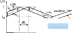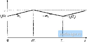 Строительный блокнот Introduction to electronics Fib. 12.3 Inductor cutrcnt waveform t)f jl current-piogramnned convcrtet operating in tlie continuous conduction mode. ![]() the artificial ramp are explained, using a simple first-order discrete-time analysis. Effects of the artificial ramp on controller noise susceptibility is also discussed. Figure 12.3 illustrates a generic inductor current waveform of a switching converter operating ill the continuous conduction mode. The inductor cnrrciit changes with a slope during the first sub-interval, and a slope -m during the second subintcrvai. For the basic nonisolated converters, the slopes m, and - Ш, are given by in I = - ,- - illj = - Buck converter L Boost converter Buck-boost converter (12.1) With knowledge of the slopes jHj and -m, we can dctcrniinc the general relationships between 1(0), t, (,.(7;), and dT. During the first subinterval, the inductorcurrent l(() increases with slope Ш[,until reaches the control signal Hence, (12,2) Solution for the duty cycle d leads to (12.3) 111 a similar manner, for the second subinterval we can write (12,4) In steady-state, ;(0) = г(Г,), d-D,ii}f - M and =Mj, Insertion of these relationships into Eq. (12.4) yields Fig. 12.4 Effect of itihisl pejtur-batioti tJP) on inductor current waveform. state ![]() -m, .i-Perturbed wavefortn {D + d]T DT. 0 = MDT,-MiiyT, (12.6) Steady-State Eq. (12.6) coincides with the requirement for steady-state volt-second balance on the inductor. Consider now a small perturbation in ijiQ). i,(O) = /, + i,(0) (12.7) 7((, is a steady-state value of /(0), which satisfies Eqs. (12.4) and (12.5), while (, (<)) is a small perturbation such that m\-\h. (12.8) It is desired to assess the stability of the current-programmed controller, by determining whether this small perturbation eventually decays to zero. To do so, let us solve for the perturbation after n switching periods, ti<iiiTJ), aitd detemiine whether ttinTJ), tends to zero for large n. The steady-state and perturbed inductorcurrent waveforms are illustrated in Fig. 12.4. For clarity, the size ofthe inductor current perturbation 1 (0> is exaggerated. It is assumed that the converter operates near steady-state, such that the slopes rn and /Hj are essentially unchanged. Figure 12.4 is drawn for a positive Г(О); the quimtity dT is then negative. Since the slopes ofthe steady-state and perturbed waveforms are essentially equal over the interval (i < J < (D + t})T, the difference between the waveforms is equal to (,( forthis entire interval. Likewise, the difference between the two waveforms is a constant i(,TJ over the interval (D + d)T < r < Г, since both waveforms then have the slope ~ ffij, Note that tjiT) is a negative quantity, as sketched in Fig. 12.4. Hence, we can solve for liT) in terms of Г,.(0), by considering only theinterval {D + J)!] < t < ОТ, as illustrated in Fig. 12.5. Fig, 12,5 Expattded view of the steady-state and perturbed inductor current waveforms, neur the peak afij:t}. ![]() Steady-state waveform Perturbed waveform From Fig. 12.5, we can use tlie steady-state waveform to express г7(0) as the slope multiplied by the interval length - T. Hence, (12.9) Likewise, we can use the perturbed waveform to expiess t,/? ,) as the slope - ittj, multiplied by the interval length - ill;. Elimination of the intermediate variable d from Eqs. (12.9) and (12.10) leads to ,(r,) = tV(0) ffl; ft I (12.10) (12.11) If the converter operating point is sufficiently close to the quiescent operating point, then ffVl given approximately by Eq. (12.6). Equation (12.11) then becomes A similar analysis can be performed during the next switching period, to show that r,(27,) = r (7,)--g]=, j-] After switching periods, the perturbation becomes .( T,) = ?,f(/i~ 1)7;,) = ?,(0) (12.12) (12.13) (12,14) Note that, as ;/ tends to infinity, the perturbation tjiiT,) tends to zero provided that the characteristic value ~ DJD has magnitude less than one. Conversely, the perturbation irtT) becomes large in magnitude when the characteristic value a - -DID has magnitude greater than one:
