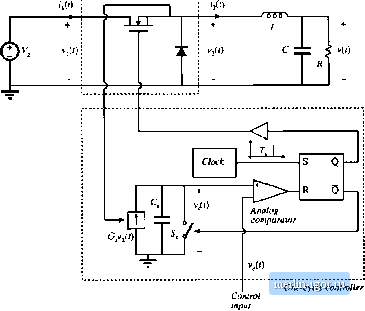 Строительный блокнот Introduction to electronics An artificial rump is enoployeJ, tiaving slope 0.15 A/fiSec. (aJ Construct tlic magnitude and phase asymptotes of the control-to-output uansfer function C,x) for duty-cycle control. On the same plot, construct the magnitude iind phase asympiotes of the control-to-output tran.sfer function C.W for cLirrenl-programmed control. Compare. (b) Construct the magnitude asymptotes of the line-to-output transfer function .(j) forduty-cycle control. On the same plot, constmct the magnitude asymptotes of lhe line-to-output transfer function G j. (j) for current-programmed control. Compare. 118 A buck-boost converter operates in lhe discontinuous conducliun mode. Its current-programmed control- ler has no compensating artificial ramp: i = 0. (a) Derive an expression for the conlrol-lo-oulput transferfunction Gj.(s), using the approximation !, = 0. Give analytical expressions for the corner frequency and dc gain. (b) Repeat part (a), wilh the inductor included. Show that, provided the inductor is sufficiently small, then the inductor merely adds a high-frequency pole and zero to Gy(.v), and the low-frequency pole derived in pan (a) is essentially unchanged. (e) At the CCM-DCM boundary, what is the minimum value of lhe RHP zero frequency? i23 A current-programmed boost converter interfaces a 3 V battery lo a small portable 5 V load. The con- verter tiperates in the disconlintiOLLs condticiion mode, wilh consliinl transistor on-time r and variable off-time: lhe switching frequency can therefore vary and is used as the control variable. There is no artificial ramp, and the peak lran4isU>r current is equal lo a fixed value J.l in practice, I is chosen lo minimize the total loss. (a) Skelch die transistor and diode voltage and current waveforms. Determine expressions for the waveform average values, and hence derive a large-signal averaged equivalent circuit for Ihia cxmverler (b) Perturb and linearise your model of part (a), to obtain a small-signal equivalent circuit. Note lhat lhe switching frequencyshould he perturbed. (c) Solve your model of part (b), to derive an expression for lhe low-frequency conlrol-to-output transferfunction G.t) = v(j)/(,). Express your results in standard normalized form, and give analytical expressions for the corner frequencies and dc gains. You may assume that L is small. 12,10 A current-programmed boost converter is employed in a low-harmonic rectifier system, in which the inpul vollage is a rectified sinusoid: v(t) = V/ \ !>\п(Ш) . The dc output voltage v{l) ч f> V. The capacitance С is large, such lhat lhe output vollage coniains negligible ac variations, ll is desired lo cunirol lhe converter such that the inptit currenl is proportional lo vf/}: !(/) = v(t)!R, where is a constant, called the emtilaled resistance. The averaged Ь1юк1 tt)nverler intKlel of Fig. 12.180i) suggests lhat this can he accomplished hy simply telling ijf) he proportional to v,(0, according lo i(t) - vO)IR. You may make the simplifying assumption that the converter always tperales in the continuous conduction mode. (a) Solve the model of Fig. 12.1 S(a), subject to the assumptions listed above, to determine the power (pit))r Find lhe average value o({p(f))j., averaged over one cycle of lhe ac inpul if/O. (b) An artificial ramp is necessary U) stabilize the current-programmed >nlrollcr at some operating points, What is the minimum value of w, that ensures stability at all operating points along the inpul rectified sinusoid? Express your result as a function of V and L Show your work. (c) The artificial ramp and inductorcurrent ripple cause lhe average input current to differ from Derive an algebraic expression for (ij,(r)), as a function of ijf) and other quandties such as m, ij,(t), V, L, and Tj.. For this part, you may as.sume that the inductor dynamics are negligible. Show your work. (d) Substitute Vj<t) = Уц I sin(tt)() and i/) = V{t)/R.,inl<i your result of part (c), lo determine an expression for l(t). How does iil) differ from a rectified sinusoid? ; Switch network 1 i,<.t} [ --e-* -J HOB 1-