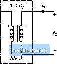 Строительный блокнот Introduction to electronics The MMF generators are additive, becanse the ciittents i and pass iti the same direttion through the core window. Solution oi Fig. 13.14 yields Ф.Л = 1(, +1гг. This expression could also be obtained by substitution of = Фй? into Eq. (13.35). (13.36) 13.2.1 The Ideal Transformer In the ideal transformer, the core reluctance approaches zero. The causes the core MMF= Фй to also approach zero. Equation (13.35) then becomes 0- n,i, + tifi., (13.37) Also, by Faradays law, we have Note that Ф is the same in both equations above: the same total flttx links both windings. Elimination of Ф leads to V, V, III ll (13,39) Equations (13.37) and (13.39) are the equations of the ideal transformer: = and л,(1-1-(,п = 0 (13,40) (13,38) I 2 Ideal Fig, 13.15 Ideal transformer .symbol. The ideal transformer symbol of Fig. 13.15 is defined by Eq. (13.40). 13.2.2 The Magnetizing Inductance For the actual case in which the core reluctance ifi is nonzero, we have Ф.Л = /1]+ with 1! = ! (13.41) Elimination of Ф yields - i d ~ Mdt (13.42) ![]() Hg. 13,16 Transformei model including miigneliiitig inductance. This equarion is of tlie form where (13.43) l.u = i -I- Il 113,44) are the magnetizing inductance and magneiizing ctirrent, referred to the primary winding. An equivalent circuit is illustrated in Fig. 13.16. Figure 13.16 coincides with the transformer model introduced in Chapter 6. The magnetizing inductance models the magnetization ofthe core material. It is a real, physical inductor, which exhibits sattiration and hysteresis. All physical transformers must contain a magnetizing inductance. Forexample, suppose that we disconnect the sectmdary winding. We are then left with a single winding on a magnetic core-an indtictor. Indeed, the equivalent circuit of Fig. 13.16 predicts this behavior, via the magnetizing inductance. The magnetizing current causes the ratio of the winding currents to differ from the turns ratio. The transformer saturates when the core flux density B(t) exceeds the saturation fltix density When the transformer saturates, the magnetizing current i,(f) becomes large, the impedance ofthe magnetizing indtictance becomes small, and the transformer windings become short circuits. It should be noted that large winding currents i,(() and ((O do not necessaiiiy cause saturation: if these currents obey Eq. (13.37), then the magnetizing current is zero and there is no net magnetization of the core. Rather, saturation of a transformer is a function of the applied volt-seconds. The magnetizing cutrent is given by Alternatively, Eq. (13.45) can be expressed in terras of the core flux density B(t) as v,(/)rff (13,45) (13.46) The flux density and magnetizing current will become large enough to saturate the core when the applied volt-seconds Aiis too large, where Л, is defined for a periodic ac voltage waveform as (13,47) Ttie limits are chosen such that the integral is taken over the positive portion of the applied periodic voltage waveform. To fix a saturating transforiner, the flux density should be decreased by increasing the number of turns, or by increasing the core cross-sectional areaAj. Adding an air gap has no effect on saturation of conventional transformers, since it does not modify Eq. (13.46). An air gap simply makes the tronsformer less idctd, by decreasing Lf and increasing ((0 without changing B{i). Saturation mechanisms in tims-formers differ from those of inductors, because trfinsformer sfiturfition is determined by the Eipplied winding voltage waveform.s, rather than the applied winding currents. 13.2.3 LEfi](ag Inductances In practice, there is some flux which links one winding but not the other, by leaking into the air or by some other mechanism. As illustrated in Fig. 13.17, this flux leads to leakage indiictance, i.e., additional effective inductances that are in series with die windings, A topologically equivalent structure is illustrated in Fig. 13.17(b), in which the leakage fluxes and arc shown exphcitly as separate inductors. -Ф.. 2(f) v,(0 Fig, 13.17 Leakage flux in a two-winding transformer: (a) transformer geometry, (b) an equivalent systBni. |