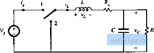 Строительный блокнот Introduction to electronics SJ Coiislivclioii of EqiiKiileia Circtiii Model ![]() Fig. 3.IS Efficiency vs. tluLy cycie, boosi convener with inductor copper loss. 3.15 that the efficiency is typically high at low duty cycle.4, but decreases rapidly to zero near D = 1. Thus, the basic dc transformer model can be refined to include other effects, such as the inductor copper loss. The model describes the basic properties of the converter, including (a) transformation of dc voltage and current levels, (b) second-order effects such as power los.ses. and (c) the conversion ratio m. The model can be solved to find not only the output voltage V, but also the inductor citrrent / and the efficiency fi. All of the well-known techniques of circuit analysis can be employed to solve the model, making this a powerful and versatile approach. The example considered so far is a relatively simple one. in which there is only a single loss element. Of course, real converters are considerably more complicated, and contain a large number of loss elements. When solving a complicated circuit to find the output voltage and efficiency, it behooves the engineer to use the simplest and most physically meaningful method possible. Writing a large number of simultaneous loop or node equations is not the best approach, because its solution typically requires several pages of algebra, and the engineer usually makes algebra mistakes along the way. The practicing engineer often gives up before finding the correct solution, The equivalent circuit approach avoids this situation, becaitse one can simplify the circuit via well-known circuit manipulations such as pushing the circuit elements to the secotidary side of the transformer. Often the answer can then be written by inspection, using the voltage divider rule or other formulas. The engineer develops confidence that the result is correct, and does tiot contain algebra mistakes. Fig, 3.16 Buck converter cxiiinplc. ![]() HOW TO OBTAIN THE INPUT PORT OF THE MODEL Lets try to derive the model of the buck converter of Fig. 3,16, using the procedure of Section 3.3. The inductor winding resistance is again modeled by a series resistor R,. The average inductor voltage can be shown to be (3.24) This e(]uation describes a loop with the dc inductor currentThe dc components of the voltages around this loop are: (() the DV term, mt)deled as a dependent voltage source, (ii) a voltage drop I,R modeled as resistor R, and (iii) the dc output voltage Vf., The average capacitor current is W = 0 = /,- (3.25) This equation de.scribes the dc currents flowing into the node connected to the capacitor. The dc component of inductor current, f, flows into this nt)de. The dc load current VJR(\.z., the current flowing through the load resistor R) flows out of this node, An equivalent circuit that models Eqs. (3.24) and (3.25) is given in Fig. 3.17. This circuit can be solved to determine the dc output voltage V. What happened to the dc transformer in Fig, 3,17? We expect the buck converter model to contain a dc transformer, with turns ratio equal to the dc conversion ratio, or \\D. According to Fig. 3.2, the secondary of this transformer is equivalent to a dependent voltage source, ofvalue ZJV,. Such a source does indeed appear in Fig. 3.17. But where is the primary? From Fig. 3.2, we expect the primary of the dc transformer to be equivalent to a dependent current source. In generah to derive this source, it is necessary to find the dc comptment of the converter input current ijj). The converter input current waveform ijj) is sketched in Fig. 3, IS, When the switch is in position I, 1,(0 is equal to the inductor current. Neglecting the inductor current ripple, we have ip) = When the switch is in position 2, i{t) is zero. The dc component, or average value, oii(t) is Fig. 3.17 Equiralcm circuit derived Iroin Hqs. (3,24) and (3,25), ![]() Ш - Ftg. 3,18 Converter input current waveform ijit). 3.4 How lo Ohlain ihe Inpui Port of the Model 51
