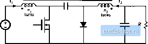 13.6 The Lwo-lransislor forward converter of Fig. 6.27 operates with = 300 V, 28 V. switching frequency= 100 kHz, and turn.!; ratio n = 0.25. The dc lead pcwer is 250 W. The transforiner uses an EC41 ferrite core: relevant data lor this сч)ге is listed in Appendix D. The core lo.ss is given by Fig. 13.20. The primary winding consists of 44 turns of #21 AWG wire, and the secondary winding is composed of 11 turns of #15 AWG wire. Data regarding the American wire gauge is also listed in Appendix D. (a) Estimate the core loss of this transformer (b) Determine the copper kiss of this Iransformer. You may neglect proximity losses. 13.7 The two-uansistor forward ctinverter of Fig. 6.27 operates in CCM with = 300 V, Г= 28 V, switching frequency = 100 kHi, and turns ratio n = 0.25. The dc kiad power is 250 W. The transformer uses an EC4I ferrite core; relevant data for this core is listed in Appendix D. This согк has window height = 2,7&ctn,The primary winding consists of44 turn.s of #24 AWG wire, and the sectindary winding is composed of 11 turns of #14 AWG wire. Each winding comprises one layer. Data regarding the American wire gauge is also listed in Appendix D. The winding operates at room temperature. (л) Determine the primary and .secondary copper ItKses induced by the dc components of the winding fiirrents. (h) Determine the primary and secondarj ctipper kisses induced by the fundamental components of the winding currents. (c) Determine the primary and secondary copper losses induced by the second harmonic components of the winding currents. 13.8 The winding currents of the transfurmer in a high-voltage inverter are essentially sinusoidal, with negligible harmonics and n dc components. The primary winding consists uf one layer containing 10 turns of round copper wire. The secondary winding consists of 250 turns of round copper wire, arranged in ten layers. The operating frequency is/= 50 kHz, and the winding porosity is 0.8. Determine the primarj and secondary wire diameters and wire gauges that minimize the total copper loss. 13.9 A certain three-winding transformer contains one primary and two secondaries. The operating frequency is 40 kRx. The primary winding contains a total of 60 turns of #26.AWG, arranged in three layers. The secxindary windings each consist of five turns of copper foil, flne turn per layer. The foil thickness is 0.25 mm. The primary layers have pt>rosity 0.Й, while the secondary layer porosity is 1. The primary winding carries a sinusoidal corrent having rms value /, while each secondary carries rms current 61. The windings an; not interleaved: the primary winding is closest U) the center leg of the core, followed by secondarj winding #1, followed by secondary winding #2. (a) Sketch an MMFdiagram illustrating the magnetic fields in the vicinity of each winding layer, (h) Determine the increased copper loss, due to the proximity effect, in each layer. (c) Determine the ratio of cxipper loss to dc copper loss, , for the entire transformer windings. (d) In this application, it is not feasible to interleave the primary winding with the other windings. However, changing the conductor size is permissible. Discuss how the windings could be better Optimized. 13.10 A transformer winding contains a four-layer primary winding, and two twtlayer secondary windings. Each layer of the primarj winding carries total current /. Each layer of secondarj winding #1 carries total current 1.5/. Each layer of secondarj winding #2 carries total current 0.5/. .All currents are sinusoidal. The effectiverelative conductor thickness is <p = 2. The windings are partially interleaved, in the following order: two primary layers, followed by both layers of secoddary #1, followed by both layers of sectmdary #2, and finally the two remaining primary layers. (a) Skelch an M.MFdiagram for this winding arrangement. (b) Determine the increased copper loss, due to the proximity effect, for each layer. (c) Determine the increase in total iransformer copper loss, due to the proximity effect. 13.11 A single-tmtpul forwiird tonverler tonliiins и (гапкГогтег hiivitig a noninterleaved setondary winding with ftmr layers. The ton verier operates at D = 0.3 in CCM, with a seeondary winding current waveform similar to Fig. 13.38. (a) Estimate the value of (pi that minimizes the secondary winding topper lo.4ses. (I>> Detennine the resulting secondary topper loss, relative to l R. 13.12 A schematic diagram and waveforms oflhe isolated SEPIC, operating in OCM, are given in Figs. 6.37 and 6.38. (a) Do you expect the SEPIC transformer to ct)ntain an air gap? Why or why not? (h) Sketch the SEPIC transformer B- loop, for CCM operation. fc) For CCM operatitm, doyt>tL expect core loss lo be significant ? Explain your reasoning. (d) For CCM operation, do you expect winding proximity losses to be signilleant? E.\plain your reasoning. |