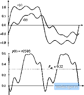 Строительный блокнот Introduction to electronics ![]() -0.5 - Fig, 16.3 Voltage, Сштет, und instantaneous power waveforms, example 2. The voltage utid etirreitt eaeli coiitaiit only third hatmonic, und are in phase. Net energy is transmitted at the third liarmonie frequency. ![]() -0.2 Fig. 16.4 Voltage, current, and instantaneous power waveforms, example 3. The voltnge contains fundamental, third, and fitth harmonics, fhe current contaiits fundamental, iifth, and seventh hiirmonics. Net energy is transmitted at the fundamental and fifth harmonic fi-equeiicies. moiiic only. It tan be seen that the instantaneous power waveform p(l) has a zero average value, and henee P is zero. Energy circulates between the .source and load, btit over one cycle the net energy transferred to the load is zero. In example 2, Fig. 16.3, the voltage and current each contain only third har-tnotiic. The average power is given by Eq. (lfi.7) in this case. In example 3, Fig. 16.4, the voltage waveform contains fundamental, third harmonic, and tlfth harmonic, while the current contains fundatnental, fifth harmonic, and seventh hartnonic, as follows: v(t) = 1.2 cos (ш) + 0.33 cos (ЗшО + 0.2 cos (Scof) (16 S) ;(() = 0.6 cos Ш + 30*) + 0, t cos (5w 4- 45 ) + 0.1 cos (Imt + 60°) Average power is transmitted at the futidamentai and fifth hartnonic frequencies, since only these frequencies are present in both waveforms. The average power is found by evaluation ofEq. (16.6); all terms are zero except for the fundamental and fifth harmonic terms, as follows: = ЛШ os (30=) . COS (45=) = 0.32 CI 6.?) The instantaneous power and its average are illustrated iit Fig. 16.4(b). 16.2 ROOT-MEAN-SQUARE (RMS) VALUE OF A WAVEFORM The rms value of a petiodic wavefortn i(f) with peritxi T is defined as (rntsvalufi) = y jl v4i)dt ( 1) The rms value can also be expressed in terms ofthe Fourier componettts. Insertion ofEq. (Ifi.l) into Eq. (16.10), and simplification using Eq. (16.5), yields (mis value) =\/v/J+ 2 C- ) Again, the integrals ofthe cross-product terms are zero. This expression holds when the wavefortn is a current: (rms current) = + Thtis. the presence of harmonics in a waveform always increases its rms vaitie. In particular, in the case where the voltage v(/) contains only fundamental while the current i(/) contains harmonics, then the har-mottics ittcrense the rms value ofthe current while leaving the average power uttchanged. This is undesirable, because the harmonics do not lead to net delivery of energy to the load, yet they increase the ( losses in the system. In a practical system, series resistances always exist in the source, load, attd/or transmission wires, which lead to unwanted power losses obeying the expression (rms turreni)X,ri (16.13) Examples of such loss elements are the resistance of ac generator windings, the resistance of the wire connecting the source and load, the resistance of transformer windings, and the resistance of semiconductor devices and magnetics windings in switching converters. Thus, it is desired to make the rras current as small as possible, while transferring the required araount of energy and average power to the load. Shunt resistances usually also exist, which cause power k)ss according to the relation (rtnsvoltag (16.14) .,Jmjji; Examples include the core losses in transforraers and ac generators, and switching converter transistor switching loss. Therefore, it is desired to alst) raake the rras voitage as small as possible while transferring the required average power to the load. 16.3 POWER FACTOR Power factor is a figure t)f merit that measures ht)W effectively energy is transmitted between a source and load network, it is measured at a given surface as in Fig. 16.1, and is defined as p, f,c:or = (ave. age power) (, Й. 15) (rnis voltage) (rnts currott) The power factor always has a value between zero and one. The ideal case, unity power factor, occurs for a load thatt)beys Ohms Law. In this case, the voltage and current waveforms have the same shape, contain the same harmtinic spectrum, and are in phase, For a given average power throughput, the rras current and voltage are rainimized at tnaxiraum (unity) power factor, that is, with a linear resistive load. In the case where the voltage contains no harmonics but the load is nonlinear and contains dynamics, then the power factor can be expressed as a product of two terms, one resulting from the phase shift of the fundatnental component of the current, and the other resulting from the current harmonics. 16.3.1 Linear Resistive Load, Nonsinusoidai Voltage In this case, the current harmonics are in phase with, and proportional to, the vt)itage harraonics. As a result, all harmonics result in the net transfer of energy to the bad. The current harmonic magnitudes and phases are I (16.16) TTie rms voltage is again and the rms current is 0 = ф so С05(е -ф )= ( (16.17) (rms vohage) = /;7Ё С ) |