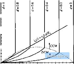 Строительный блокнот Introduction to electronics is greater than the average inductor current, or Hence, the converter operates in CCM when Substitution ofEq. (18.18) into (18.21) and .solution iniR leads to v/r) for CCM (18.2(1) (18.21) (18.22) Since v{l) varies according to Eq. (18.11), Eq. (18.22) may be satisfied at some points on the ac line cycle, and not at others. Since 0 < v(t) < V/, we can conclude that the converter operates in CCM over the entire ac line cycle when Equations (18.18) and (18.22) then hold for all f. The converter always operates in DCM when R,->- (18,23) (ia.24) For between these limits, the converter operates in DCM when v(l) is near zero, and in CCM when vit) approaches V/, The .static input characteristics of the open-loop boo.st converter arc sketched in Fig. 18.6. The input curi-cnt ijft) is plotted vs. input voltage vjf), for various duty cycles d{r}. In CCIVI, the input characteristics of the boost converter are described by in CCM To obtain a general plot, we can norinahze the input current and inpnt vohage as follows: Equation (18.25) then l>ecomes л.,(/) = 1 - d(!) (18.2.5) (18.26) (18.2.7) (18.28) This equation is independent of the input current ( ((), and hence is represented by vertical lines in Fig. Ktg. 18,6 Static ittput charactetistics of the boost converter. A typical hiicar resistive input characteristic is superimposed. 1 T 0,75 - 0,35 - ![]() 0.25 0.75 18.6. To derive the hoo&t input characteristic for DCM operation, we can solve the steady-state equivalent circuit mode! of Fig. 11.12(b) (reproduced in Fig. 18.7). Beware: the natural DCM effective resistance of Chapter 11, R = 2UdT, does not necessarily coincide with the emuiated resistance Re~ss of Eq. (IS.i). In this chapter, the quantity R is defined according to Etj. (18.1). Soltttton of Fig. 18.7 for theinputcurrent 1,(0 leads to: V-v,(f) The instantaneous power consumed by the effective resistor in the model of Fig. 18.7 is p{t) = Substitution ofliq. (18.30) into Eq. (18.29) and simplification leads to (18,29) (1S,.30) Fig, 18.7 Averaged equivalent circuit model of the bt4>st converter opeintlng in DCM, derived in Chapter 11. ![]() = ill DCM (18.31) Normalization of this equation according to Eqs. (18.26) and (18.27) yields ;,(r)(l-m,(0)=rf4W f *-32) This equation describes the curved (DCM) portions of the Fig. 18.6 input characteristics, for low lj,(()> To express the CCIVI/DCIVI mode boundarv as a function of Сг) and Eqs. (18.1) and (18.22) can be combined, leading to for CCM (18.33) Normalization of diis equation, according to Eqs. (18.26) and (18.27), results in > mlt)[ 1 - init) ] for CCM (18.34) This equation describes a parabolti having roots at - 0 and m = \, with the maximum value f = 0.25 at = 0.5.The mode boundary equation is plotted as a dashed line in Fig. 18.6 The complete input characteristics for the boost converter were plotted in Fig. 18.6 using Eqs. (18.28), (18.32), and (18.34). Figure 18.6 also illustrates the desired linear resistive input characteristic, Eq. (18.1). For the value of/f illustrated, the converter operates in DCM for v(t) near zero, and in CCIVI for Vj(Onear V.Thc intersections of boost input characteristics with the desired linear input characteristic illustrate how the controller must choose the duty cycle at various values of Vj,(f). Other converters capable of producing the M(d{t)) of Eq. (18.12) include the buck-boost, SEPIC, and 6uk converters. The boost, SEPIC, and Cuk converters share the desirable property of nonpulsating input current, and hence icquire minimal input EMI filtering. The SEPIC produces a non inverted output voltage. Isolated versions of these converters (see Chapter 6) are also sometimes employed [7-9]. Schemes involving the parallel resonant converter, as well as several types of quasi-resonant converters, ai-e also documented in the literature [10-13]. Tlie open-loop boost converter, when operated in discontinuous conduction mode, is also sometimes used as an approximation of an ideal i-ectificr. The DCIVI effective icsistance 2L (/)7;ofFig. 18.7 is then taken as an approximation of the desired emulated resistance of Eq. (18.1). The model differs from that of the ideal rectifier model of Fig. 18.1(c) in that the power .source is connected between the input and output terminals. As a resuh, harmonics are present in the input curi-cnt waveform. For example, if Vjff) is a rectified sinusoid, then the current through the cffccdve resistance 2L/cfU)Tt will also be a rectified sinusoid. Howcvci, the input current is now equal to the sum of the current through and the current flowing thiough the power source element. Since the power source is a nonlinear element, contains harmonics. For large C, the output voltage is essentially constant. The input current waveform is then given by Eq. (18.31). If V is sufficiently huge, then the term (1 - v{t)lV) is approximately equal to one, and the harmonics in(f(0)r,are small. The zcio crossings of v{t),pit), and (j.C))?; coincide. So although the DCM boost converter generates sonic current harmonics, it is nonetheless possible to construct a low harmonic rectifier that meets harmonic limits. Again, this approach has the disadvantages of the increased peak currents of DCM, and the need for additional filtering of the high-frcqiicncy pulsating input currents. Computer simulation of a DCM boost rectifier is described in Appendix B, Section B.2.3. |