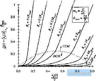 Строительный блокнот Introduction to electronics CLirrent-programmed boost converter when it operates in CCM with t.l(t) > O.S. The addition of this ramp causes 0(0), to differ from Additional deviation is introdticed by tlie inductor currem ripple. Botli mechanisms are most pronounced wlien tlie inductor current is small, near tlie zero-crossings of the ac line waveforms. The static itipttt charactetistics, that is, the average input cutiEnt vs. the input voltage, of the current-programmed boost converter are given by , in DCM (18.57) T in CCM The converter operates in the continuous conduction mode when 2L V In terms of the control current iit), tlie condition for operation in CCM can be expressed (18.58) mj. vit) (18.59) In the conventional current-programmed rectifier control scheme, the control current ij,t) is simply proportional to the ac input voltage: (18.60) where is the emulated resistance that would be obtained if the average input curretit exactly followed the reference ctirrent !;,(0. The static inptit characteristics given by Eqs. (18.57) to (18.60) are plotted in Fig. 18.17. The average input current is plotted as a function of the applied inptit voltage v/f), for several values of etuulaied resistance The regioti near the CCM-DCM boutidary is shown. The curve.s are plotted for a fixed artificial ramp having slope (18,61) This is the tninitnum value of artificial ramp that stabilizes the boost current-programmed controller at all static operating points. Decreasing m below this value leads to instability at operating points in the contintious conduction mode at low vjityv. To obtain resistor emulation, it is desired that the static input characteristics be linear and pass through the origin. It can be seen from Fig. 18.17 that this is not the case: the curves are reasonably linear ill the cotititutotts conduction mode, bttt exhibit significant curvature as the CCM-DCM boutidary is approached. The resulting average current waveforms are stiramarized in Fig. 18.8. To minimize the line current THD, it is apparent that the converter should be designed to operate deeply ill the continuous conduction mode for most ofthe ac line cycle. This is accomplished with emulated resistances R. that are much smallerthan Л = 2UT. In addition, the artificial ramp slope m ![]() Fig, 18.17 Static input cliaracteristics of ftcurreiit-prugramined boost converter, witli niiiiimuni stabilizing artili-eial ramp of Eq. (18,61). Peak i. 1.0 T 0.3 -- 0.6 -- 0.4 - 0.2 - ff 2L ![]() Fig. 18.18 input current wave.shapes predicteci by the static input eliaracteristies of Pig. 18,17, compared with a pure sinusoid. Curves are plotted for the case v-o.sv, with minimum stabilizing artificial imp. should be no greater than otherwise necessary. In practice, THD of 5% to 10% can easily be obtained in rectifiers that function over a narrow range of rms input voltages and load currents. However, low THD cannot be obtained at all operating points in universal-input rectifiers; THD of 20% to 50% may be observed at maximum ac input voltage. This problem can be solved by biasing the current reference waveform. Design of current-programmed rectifiers is discussed in [19-22], and some strategies for solving this problem are addressed in [19]. ![]() Fig, 18.19 Input current waveforms of two boost converters with hysteretic contrtil; (a) ± 10% regulation band, (b; critical conduction mode operation (± 100% regulation band). IS.3.3 CtiticaJ Conduction IModc and Hvstcrctic Control Another control scheme sometimes tised in low-harmonic rectifiers, as well as in dc-dc converters and dc-ac inverters, is hysteretic control. Rather than operating at a fixed switching freqtiency and duty cycle, the hysteretic controller switches the transistor on and off as necessary to maintain a waveform within given limits. A special case of hysteretic control, called critical conduction mode control, is implemented in several commercially-available ICs, and is popular for low-harmonic rectifiers rated below several hundred Watts [23-25]. An example is the sinusoid of Fig. 18.19(a), in which the boost converter input current is controlled to follow a sinusoidal reference with a ± 10% tolerance. The indtictor current increases wlien the transistor is on, and decreases when the transistor is off. So this hysteretic controller switches the transistor on whenever the input current falls below 90% ofthe reference input. The controller switches the transistor off whenever the inptit current exceeds 110% ofthe reference. Hysteretic controllers tend to have simple implementations. However, they have the disadvantages of variable switchitig frequency and redticed noise immunity. Another example of hysteretic contral is the waveform of Fig. 18.19(b). The lower limit is chosen to be zero, while the tipper limit is twice the reference input. This conb-oller operates the Iwost converter at the boundary between the contintiott.s atid di.scontinttoti.s conduction modes. An alternative contral scheme that getierate.s the same waveform .simply operates the transistor with cotistant on-time: the transistor is switched on when the itidttctor current reaches zero, and is switched off after a fixed |