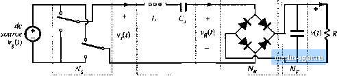 Строительный блокнот Introduction to electronics dc source тлпг1-1- Switch network (c) r- Resistive CpZpi m f load R Resonant tardc network ......................1 m r- Series tank network Parallel tatjk network LCC tank network Fijj. 19.1 A biisic class of resonant inveiters that consist of (a) a switcit network Л that drives a re.sonant tank network iVj.near resonance. Several common tank networks: (b) series, (c) pai-aliel, (d) LCC. Fig, 19,2 The tank network responds primarily to the fiiiidanieiital coinponent of the applied waveforms. Switch output voltage spectmm Resonant tank response Tank current spectrum ![]() Pig. 19,3 Half-bridge LCC inverter ciiruit;, а.ч un electronic ballast for a gas-diacharge lamp. Transfer Junction ![]() 1 Kt) fr...............I I................ Switch network Resonant tank network Rectifier network Low-pass dc filter load network Fig. 19.4 Deiivution (if a resonant dc-dc converter, by rectification and filtering of the output of a rcsoiianl inverter. high-frequency ac vi-aveform. Tlie conveiter is contruiied tu provide a relatively high voltage to start the lamp, and a lower voltage thereafter. Wlien the ballast is powered by the ac utility, a iow-harmcmic rectifier typically provides the input dc voltage for the inverter. A resonant dc~dc converter can be constructed by rectifying and filtering the ac outptit of a resonant inverter. Figure 19.4 illustrates a series-resonant dc-dc converter, in which the approximately sinusoidal resonant tank output current iff(t) is rectified by a diode bridge rectifier, and filtered by a large capacitor to supply a dc load having ctirrent / and voltage V. Again, by variation of the switching frequency / (closer to or further from the resonant frequency /д), the inagnitude of the tank current !(f), and hence а1.чо die dc load current /, can be controlled. Resonant dc~dc converters based on series, parallel, LCC, and other resonant tanlt networlts are well understood. These converters are employed when specialized application requirements justify their use. Forexample, they are cominonly employed in high voltage dc power supplies [5,6], because the substantial lealtage inductance and winding capacitance of high-voltage transformers leads unavoidably to a resonant tanlt network. The same principle can be employed to construct resonant lii± inverters or resonant linlt cycloconverters [7-9]; controllable switch networlts are then employed on both sides ofthe resonant tanlt networlt. Figure 19.5 illustrates another approach to resonant power conversion, in which resonant ele- PWM switch network ZCS quasi-resonant Sivitck network