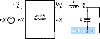 T ![]() R г v(t) Fig. 19.5 Cterivation of я cjuasi-resonant conveiter: (a) conventional PWM swiich iiecwork, (b) a ZCS quasi-reso-tiant switcli network, (e) a uasi-resonant buck converter is obtained by employing a quasi-resonant switch network such as (b) in a buck convurtcr. ments are inserteti into the switch network of an otherwi.se-PWM converter. A resonant swiich network, or quasi-resonam converter, is then obtained. For example, in Fig. 19.5(h), resonant elements and are combined with the switch network transistor and diode. The resonant frequency of these elements is somewhat higher than the switching frequency. This causes the switch network waveforms ij{r) and Vj(() to become quasi-sinusoidal pulses. The resonant switch network of Fig. 19.5(b) can replace the PWM switch network of Fig. 19.5(a) in nearly any PWM converter. For example, insertion of the resonant switch network of Fig. 19.5(b) into the converter circuit of Fig. 19.5(c) leads to a quasi-resonant buck converter Numerous resonant switch networks are known, which lead to a large number of resonant switch versions of buck, boost, buck-boost, and other converters. Quasi-resonant converters are described in Chapter 20. The chief advantage of resonant converters is their reduced switching loss, via mechanisms known as zero-current switching (ZCS), and z.ero-whafe switciiing (ZVS). The turn-on antl/or turn-off transitions of ihe various converter semiconductor elements can occur at zero crossings of the resonant converter quasi-sinusoidal waveforms. This eliminates some of the switching loss mechanisms described in Chapter 4. Hence, switching loss is reduced, and resonant converters can operate at switching frequencies that are higher than in comparable PWM converters. Zero-voltage switching can also eliminate some of the sources of converter-generated electromagnetic interference. Resonant converters exhibit several disadvantages. Although the resonant element values can be chosen such that good performance with high efficiency is obtained at a single operating point, typically it is difficult to optimize the resonant elements such that good performance is obtained over a wide range of load currents and input voltages. Significant currents may circulate through the tank elements, even when the load is removed, leading to poor efficiency at light load. Also, the quasi-sinusoidal waveforms of resonant converters exhibit greater peak values than those exhibited by the rectangular waveforms of PWM converters, provided that the PWM current spikes due to diode stored charge are ignored. For |