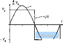 Строительный блокнот Introduction to electronics these reasons, resonant converters exhibit increaseiJ continction losses, which can offset their reduced sv/itching losses. In this chapter, the properties ofthe series, parallel, and other resonant inverters and dc-dc converters are investigated using the sinusoidal approximation [3, 10-12]. Harmonics ofthe switching frequency are neglected, and the tanlt waveforms are assumed to be purely sinusoidal. This allows simple equivalent circuits to be derived for the bridge inverter, tank, rectifier, and output filter portions of the converler, whose operation can be understood and solved using standard linear ac analysis. This intuitive approach is quite accurate for operation in the continuous conduction mode with a high- response, but ijecomes less accurate when the tanlt is operated with a low -factor or for operation of dc-dc resonant converters in or near the discontinuous condticlion mtKle. For dc-dc resonant converters, the important result of this approach is that the dc voltage conversion ratio of a continuous condttction mode resonant converter is given approximately by the ac transfer function of the tanlt circuit, evaluated at the switching frequency. The tank is loaded by an effective output resistance, having a valtie nearly equal to the output voltage divided by the output current. It is thtis quite easy to detemiine how the tank components and circuit connections affect the converter behavior. The influence of tank component losses, transformer nonidealities, etc., on the output voltage and converter efficiency can also be found. Several resonant networlt theorems are presented, v/hich allow the load dependence of conduction loss and of the гего-voiiage- or гего-current-switching properties to be explained in a siinple and inttiitive manner. It is found that the series resonant converter operates with a step-down voltage conversion ratio. With a 1:1 transformer ttirns ratio, the dc output voltage is ideally equal to the dc input voltage when the transistor switching frequency is equal to the tank resonant frequency. The otitput voltage is reduced as the switching frequency is increased or decreased away from resonance. On the other hand, the parallel resonant converter is capable of both step-tip and step-down of voltage levels, depending on the switching frequency and the effective tanlt £l-factor. The exact steady-state solutions of ihe ideal series and parallel resonant dc-dc converters are stated in Section 19.5. Zero-voltage switching and zero-current switching mechanisms ofthe series resonant converter are described in Section 19.3. In Section 19.4, the dependence of resonant inverter properties on load is examined. A simple frequency-domain approach explains why some resonant converters, over certain ranges of operating points, exhibit large circularing tanlt currents and low efficiency. The boundaries of zero-voltage switching and zero-current switching are also determined. It is also possible to modify the PWM converters of the previous chapters, so that zero-current or zero-voltage switching is obtained. A number of diverse approaches are known that lead to soft switching ill buck, boost, forward, flyback, bridge, and other topologies. Chapter 20 stimmarizes some ofthe weli-ltnown schemes, including resonant switches, quasi-square wave switches, the full-bridge zero-volt-age transition conveiter, and zero-voltage switching in forward and flyback conveiters contnining active-ciainp snubbers. A detailed description of soft-switching mechanisms td diodes, MOSFETs, and IGBTs is also given. 19.1 SINUSOIDAL ANALYSIS OF RESOINAINT CONVERTERS Consider the class of resonant converters that contain a controlled switch network that drives a linear resonant tanlt networlt Л,-, In a resonant inverter, the tank network drives a resistive load as in Fig. 19.1. The reactive component ofthe load impedance, if any, can be effectively incoфorated into the tank network. In ihe case of a resonant dc-dc converter, the resonant tank neiwork is connected to an uncontrolled rectifier network Af, filter network and load R, as illustrated in Fig. 19.4. Many well-known converters can be represented in this form, including the series, parallel, and LCC topologies. In ihe most eoininon modes of operation, the eontrolled switch network produces a square wave voltage output vj.1) whose frequency/, is close to the tank network resonant frequency,- In response, the tank network rings with approximately sinusoidal waveforras of frequency/. In the case where the resonani tank responds primarily to the fundamental component/of the switch waveform v,(r), and has negligible response at the hannmiic frequencies nf, и = 3, 5, 7,..., then the tank waveforms are well approximated by their fundamental components. As shown in Fig. 19.2, this is indeed the case when the tank network contains a high-g resonance at or near the switching frequency, and a low-pass characteristic at higher frequencies. Hence, let us neglect harraonics, and corapute the relationships between the fundamental components of the tank terminal waveforms i,(r), (\(f). t n- 19.1.1 Controlleti Switch Network Model If the switch network of Fig. 19.6 is controlled to produce a square wave of frequency/, = ti)/2n as in Fig. 19.7, then its output voltage wavefurmVj(f) can be expressed in ihe Fourier series v,(0 = - 2 /i sin Uiiaj) The fundamental coinponent is vji)-. sin U,}J}= (td.I) (ly.l) ![]() Switch network Ilg. 19.6 An idcid switch network. which has a peak amplitude of (4/л) times the dc input voltage Vj and is in phase vrith the original square wavei/O- Hence, the switch network output terminal is modeled as a sinusoidal voltage generator, .yiit). It is also of interest to inodel the converter dc input port. This requires computation of the dc component ! of the switch mput current !,((). The switch input current !,(() is equal to the output current !,(f) wh