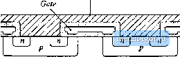 Diodes are rated according to the length of their reverse recovery time f. Standard recovfiy rectifiers are intended for 50 Hz or 60 Hz operation; reverse recovery times of tliese devices are usually not specified. Fast recowry rectifiers and ultrafasT recovery rectifiers are intended for use in converter applications. Tiie reverse recovery time t, and soinetiines ;ilso the recovered cliarge Q, are specified by manufacturers of tliese devices. Ratings t)f several cominercial devices are listed in Table 4.1. Schottky diodes are essentially inajority-carrierdevices whose operation is based on the rectifying characteristic of a nietal-semiconductor junction. These devices exhibit itegligible minority stored charge, and their switching behavior can be adequately inodeled simply by theirdepletion-region capacitance and equilibriuin exponential i-v characteristic. Hence, an advantage of the Schottky dit)de is its fast switching speed. An even inore iinporlant advantage of Schottky diodes is their low ft)rward voltage drops, especially in devices rated 45 V or less. Schottky ditxies are restricted to low breakdown voltages; very few commercial devices are rated to block 1(X) V or more. Their off-state reverse currents are considerably higher than those of p-n junction diodes. Characteristics of several commercial Schottky recti-fiets are also listed in Table 4.1. Another important characteristic of a power semiconductor device is whether its on-resistance and forward voltage drop exhibit a positive temperature coefficient. Such devices, including the MOSFET and IGBT, are advantageous because multiple chips can be easily paralleled, to obtain high-current modules. These devices also tend to be more ritgged and less sitsceptible to hot-spot formation and second-breakdown problems. Diodes cannot be easily connected in parallel, because of their negative temperature coefficients: an imbalance in device characteristics may cause one diode to conduct more current than the others. This diode becomes hotter, which саи.че.ч it to conduct even more of the total tin-rent, lit consequence, the current does not divide evenly between the paralleled devices, and the current rating of one of the devices may be exceeded. Since BJTs and thyristors are controlled by a diodejunction, these devices also exhibit negative temperature coefficients and have similar problems when operated in parallel. Of course, it is possible to parallel any type of semiconductor device; however, use of matched devices, a common thermal substrate, and/or external circuitry may be required to cause the on-state currents of the devices to be equal. Fig. 4.26 Cross-section of DMOS м-clianrief power MOSFET strucmre. Ctosshatched regions are inetaHized contacts. Shaded regions are iiisu-litling silicon dioxide layers. < Source ![]() Drain 4.2.2 Metal Oxide Semiconductor Field-Effect Transistor (MOSFET) The power MOSFET is a modern power seraiconductt)r device having gate lengths close to t)ne micron. The power device is comprised of many small parallel-connected enhancement-mt)de MOSFET cells, which cover the surface of the silicon die, A cross-section of one cell is illtistrated in Fig. 4.26, Ctirrent flows vertically through the silicon wafer: the metallized drain connection is made on the bottom of the chip, while the metallized source connection and polysilicon gate are on the top surface. Under normal operating conditions, in which v,, > 0, bt)th the p-n and p-n junctions are reverse-biased. Figure 4.27(a) illustrates operation of the device in the off state. The applied drain-to-source voltage then appears across the depletion region of the junction. The fi~ region is lightly doped, such that the desired breakdown voltage rating is attained. Figure 4.27(b) illustrates operation in the on state, with a sufficiently large positive gate-to-source voltage. A channel then forms at the surface of the/? region, underneath the gate. The drain current flows through the n~ region, channel, и region, and out through the source contact. The on-resistance of the device is the sum of the resistances of the n region, the channel, the st)urce and drain contacts, etc. As the breakdown voltage is increased, the on-resistance becomes dominated by the resistance of the n~ region. Since there are no minority carriers to cause conductivity modulation, the on-resistance increases rapidly as the breakdown voltage is increased to several hundred volts and beyond. Yhep-fi junction is called the body diode:, as illustrated in Fig. 4.27(c), this junction forms an effective diode in parallel with the MOSFET channel. The body diode can bectme forward-biased when the drain-to-soiirce voltage v ,(t) is negative. This diode is capable of ct)nducting the full rated current of the MOSFET. However, most MOSFETs arc not optimized with respect to the speed of their body diodes, and the large peak currents that flow during the reverse rectjvery transition of the body diode can cause device failure. Several manufacturers produce MOSFETs that contain fast recovery bt)dy diodes; these devices are rated to withstand the peak currents during the body diode reverse recovety transition. Typical ([-channel MOSFET static switch characteristics are illustrated in Fig. 4.28. The drain current is plotted as a function of the gate-to-source voltage, for various values of drain-to-source voltage. When the gate-to-source voltage is less than the threshold voltage Vj the device operates in the off state. A typical value of V, is 3 V. When the gate-to-source voltage is greater than 6 or 7 V, the device operates in the on state; typically, the gate is driven to 12 or 15 V to ensure minimization of the forward voltage drop. In the on state, the drain-to-source voltage V is roughly proportional to the drain current |