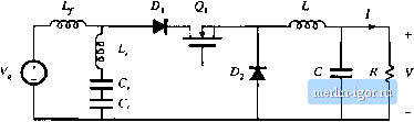 Строительный блокнот Introduction to electronics 20.3.3 Quasi-Square-Wave Resonant Switches ![]() Another basie dass of resonant switch networks is the (a) quasi-square wave converters. Both zero-voltage switching and zero-current switching versions are known; the resonant tank networks are illustrated in Fig. 20.2E. In the network of Fig. 20.28(a), all semiconductor devices are effectively in series with the tank inductor, and hence operate with zero-current switching. In the network of Fig. 2().28(b), ail semiconductor devices iire effectively in parallel with the tank capacitor, and hence operate with zero-voltage switching. Figure 20.29 illustrates implementation of a zero current switching quasi-square wave resonant switch, in a buck ct)nverter with input filter. Elements t-and C-are large in value, and constitute a single-section L-C input filter. Elements iand tform the .series resonant tank: these elements are placed in series with input fiiter capacitor Cj. Since and Cj are connected in series, they can be combined into a single small-value capacitor. In this zero-current-switching converter, the peak transistor current is identical to the peak transistor current of an equivalent PWM converter. However, the peak transistt)r blocking voltage is increased. The ZCS QSW resonant switch exhibits a switch conversion ratio ji that is restricted to the range 0 < fl <Q.5. Analysis of this resonant switch is given in [13-14]. A buck converter, containing a zero-voitage-switching quasi-square wave (ZVS QSW) resonant switch, is illustrated in Fig. 20.30. Typical waveforms are given in Fig. 20.31. Since the tank inductor and the output filter inductor L iire connected in parallel, these two elements can be combined into ii single indtictt)r having a small value nearly equal to L. Analyses of the ZVS QSW resonant switch are given in [14,15,18]. A related full-bridge converter is described in [16]. The ZVS QSW resonant switch is notable because zero voltage switching is obtained in all semiconductor devices, yet the peak transistor voltage is identical to that of an equivalent PWM switch [13]. However, the peak transistor currents are increased. Characteristics of the zero-voltage-switching quasi-square wave resonant switch are plotted in Fig. 20.32. The switch conversion ratio (l - Vj/V, is plotted as a function of nt)rmalized switching fre- Fig. 2(1.28 Elimination of converter low-frequency elements reduces the quasi-squaie-wave switch cells to these networks; (a) ZCS quasi-square-wave network, (h) ZV.S quasi-square-wave network. ![]() Fig. 20.2У Incorporation of a ZCS quiisi-sqLiare-wave resonant switch into a buck converter containing an L-C input filter. 788 Soft Swilching ![]() hit) ТЛПР Fig. 20.30 incorporation ofa ZVS quasi-square-wave resonant swiich into a butk converter. Fig, 20,31 Waveforms of the ZVS qitasi-square-wave resonant swilcli converter nf Fig, 2U.3ti. ![]() Conducting devicts: D Ol i O, I X \ Fig, 20.32 Characteristics of the ZVS quasi-square wave resonant switch network; switch conversiun ratio , as a fnnotlon of F and J, Dashed line: ZVS boundary. ![]() 1.0 F © v,(0 Fig, 20.33 Quaai-square wave ZVS buck cotiverter containing a synchronous rectifier. quency Fund nonnaiized output currenti. where these quantities are defined as foiiows: (20.66) In addition, the zero-voltage-switching boundary is piotted. It can be seen that the requirement for zero-voltage switching limits the switch conversion ratio Ц to the range 0.5 < ;t < I. In consequence, the buck converter of Fig. 20.30 cannot produce output voltage.s less than O.SV without losing the ZVS property. A version which attains 0 Й ;i < 1, at the expense of increased transistor voltage stress, is described in [17]. In addition, the two-switch version of the ZVS-QSW switch can operate with ZVS for fl < 0.5. A useful variant of the converter of Fig. 20.30 involves replacement of the diode with a synchronous rectitlei, as illustrated in Fig. 20.33 [8,9]. The second transistor introduces an additioital degree of freedom in control ofthe converler, because this transistor can be allowed to conduct longer than the diode would otherwise conduct. This fact can be used to extend the region of zero-voitage switching to conversion ratios approaching zero, and also to operate the converter with constant switching frequency. Typical tank element waveforms for the ciicuit of Fig. 20.33 i\re illustrated in Fig. 20.34. These waveforms resemble diose of the single switch case, Fig. 20.31, except that the tank cturent is negative while transistor conducts. The duty cycle D is defined with respect to the turn-off transitions Fig. 20J4 Waveforms for the two-switch QSW-ZVS converter OfFig, 20.33. ![]() Conducting [ devices: q,] x |