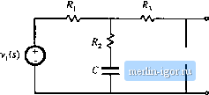Строительный блокнот Introduction to electronics ![]() 4 < Fig, C.IO R-C circuit example of Section C.4.i, wliere Z(j) is llie capacitor inapedance lIsC. The impedance Zj,(j) is the Thevenin eqiiivalenl impedance seen at the port where the capacitor is cotitiected. As illtistrated in Fig. C. 12(a), this impedance i.s foutid by setting the indepetident souice to zero, and then determining the impedance between the port termitials. The result is: (C.31) Figure C.12(b) illustrates determination ofthe impedance Zj). A current source \(s) is connected to the port, in place of the capacitor. In the presence ofthe input v{s\ the current source r(.?) is adjusted so that the output Vj(s) is nulled. Under these null conditions, the impedance Zj) is found as the ratio of v{s) to \{s). Il is easiest to find Z(i) by first determining the elTecl ofthe null condition on the signals in the circuit. Since is nulled to zero, there is no ctirrent through the resistor Д4. Since is connected in series with Я, there is also no cunent through Д and hence no voltage across R.. Therefore, the voltage V, in Fig. C. 12(b) i.s equal to v, i.e.. j null Therefore, the voltage v is given by /Д;. The impedance Z is (C.32) Fig. C.ll Manipulation of the circuit v{s) Ci ai Fig. C, 10 into the form of Fig. C. I. 1 -ЛЛг Linear circuit ЛЛ/- port ЛЛг- port t ЛЛ/-T-\f\r- port 4 S V,(S) null Fig, C,I2 MeasLueiTient of the quantitLes Z(,!) and Z,)(j): (aJ deter-ininaiioii of Z,j(.v), (b) tleterniination <>f7 (.v) (CB) Note that, in general, the independent sources and ( are nonzero dtiring the measurement. For this example, the null condition implies that the current i(s) flows entirely through the path composed of K, R, and V. The transfer function G(s) is found by substitution of Eqs. (C.31) and (C.33) into Eq. (С.ЗО): c(.0 = a 1 + .vC r2 + Wll(f, + (CM) For this example, the result is obtained in standard normalized pole-zero form, because the capacitor is the only dynamic element in the circuit, and because the original conditions, in which the capacitor impedance tends to an open circuit, coincide with dc conditions in the circuit. A similar procedure can be applied to write Ihe transfer function of a circuii, containing an arbitrary number of reactive elements, in normalized form via an extension of the Extra Elemeni Theorem [3], C.4.2 An Unmudeled Element We are told that the transformer-isolated parallel resonant inverter of Fig. C.13 has been designed with the assutnption that the transformer is ideal. The approxitnate sinusoidal analysis techniques of Chapter 19 were employed to inodel the inverter. It is now desired to specify a transformer; this requires that limits be specified on the minimum allowable transformer magnetizing inductance. One way to approach this problem is to view the transformer magnetizing inductance as an extra element, and to derive conditions that guarantee that the presence ofthe transformermagnetizing inductance does not significantly change the tanlc network transfer function G(s). Figure C.14 illustrates the equivalent circuit model of the inverter, derived using the approximate sintisoidal analysis technique of Section 19.1. The switch network output voltage vДt) is modeled by its fundamental component vil), a sintisoid. The tank transfer function Gis) is given hy: vjs) (C,35) 1 :я Fig. C,I3 Parallel resonant inverter example. Transfer function 1 : n Fig. C.14 Equivalent circuit model ofthe tank network, based on the approximate sinusoidal analysis technique. |