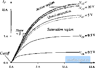 Строительный блокнот Introduction to electronics region. This currem leads to a voltage drop in the resistance of Ihsp material, which influences the voltage across the base-emitterjimction. During the turn-off transition, the base current -/j causes the base-emitter junction voltage to be greater in the center of the base region, and smaller at the edges near the base contflcts. This causes the collector current to focus near the center of the base region. In a similar fashion, a large /д, causes the collector current to crowd near the edges of the base region during the turn-on transition. Since the collector-to-emitter voltage and collector current are simultaneously large during the switching transitions, substantial power loss can be associated with current focusing. Hence hot spots are induced at the center or edge of the base region. The positive temperature coefficient of the base-emitter junction current (corresponding to a negative temperature coefficient of the junction voltage) can then lead to thermal runaway and device failure. Thus, to obtain reliable operation, it may be necessary to limit the magnitudes of/ and It may also be necessary to add external siiu!)ber networks which the reduce the instantaneous transistor power dissipation during the switching transitions. Steady-state characteristics of the BJT are illustrated in Fig. 4.35. In Fig. 4.35(a), the collector current /is plotted as a function of the base current /д, for various values of collector-to-emitter voltage V(-.jr.The cutoff, active, quasi-saturation, and saturation regions are identified. At a given collector cur- 200 V ![]() ![]() CEO CBO CB Fig. 4.35 BJT static characteristics: (a) vs. /д, illustrating tlio regions of operaliott; (b) vs. . illustrating voltage breakdown characteristics. rent If.., to Operate in the saturation region with rrtininiuni forward voltage drop, the base current !/) must be sufficiently large. Tire slope dlJdl/ in the active region is tire current gain P. it can be seen that fl decreases at high current-near the rated current of the BJT, tiie current gain decreases rapidly and hence it is difTtcult to fully saturate the device. Collector cuirent l(~ is plotted as a function of collector-to-emitter voltage Vf.f in Fig. 4.35(b), for various values of/д. The breakdown voltages BV BVfu. anJ aio illustrated. BVq is the avalanche breakdown voltage of the base-collector junction, with the emitter open-circuited or with sufficiently negative basecurrent. BV is the .somewhat smaller coUec-tcn-emitter breakdown voltage cjbserved when the base current is zertj; as avalanche breakdown is approached, free carriers are created that have the same effect as a positive base current and that cause the breakdown voltage to be reduced. BVjj, is the breakdown voltage observed with positive base current. Because of the high instantaneous power dissipation, breakdown usually results in destruction of the BJT. In most applications, the off state transistor voltage must not exceed BV-,. High-voltage BJTs typically have low current gam, and hence Darlington-connected devices (Fig. 4.36) are commoti. If transistors Qi and <2; have current gains pj and (li respectively, then the Darlington-connected device has the substantially increased current gainP, + (i + PiPj, In a monolithic Darlington device, transistors Q and are integrated on the same silicon wafer. Diode Dj speeds up the turn-off process, by alkjwing the base driver to actively remove the stored charge of both and Q- diiringtheturn-offtransition, At voltage levels below 5(X) V, the BJT ha.s been almost entirely replaced by the MOSFET in power applications. It is also 43; Durliugton-connected being displaced in higher voltage applications, where new designs gj-p Including diode fur improve-utilize faster IGBTs or other devices. itient of turn-off times. 4.2.4 Insulated (late Bipolar Transistor (HIBT) A cross-section of the IGBT is illustrated in Fig. 4.37. Comparison with Fig. 4.26 reveals that the IGBT and power MOSFET are very similar in construction. The key difference is the/; region connected to the collector of the IGBT. So the IQBT is a modern four-layer power semiconductor device having a MOS gate. 9 Emitter Fig, 4..37 IGRT structure, Crosshatchcd regions are metallized coniacis. .Shaded regions are insulating .silicon dioxide layers. ![]() Minority carrier injection t t Collector FiK. 4.38 rlie IGBT: (a) bchematic symbol, (b) equivalent eircuit. Gate Emitter The funetion of the added p region is to injeet minority charges into the ;( region while the device operates in the on state, as illu.strated in Fig. 4.37. When the IGBT conducts, the p-n junction is forward-biased, and the minority charges injected into the ft region cause conductivity modulation. This reduces the on-resistance of the n~ region, and allows high-voltage IGBTs to be constructed which have low forward voltage drops. As of 1999, IGBTs rated as low as Ш) V and as high as 33(Xi V are readily available. The forward voltage drops of these devices are typically 2 to 4 V, much lower than would be obtained in equivalent MOSFETs of the same silicon area. Several schematic symbols for the IGBT are in current use; the symbol illustrated in Fig. 4.38(a) is the most popular. A two-transistor equivalent circuit for the IGBT is illustrated in Fig. 4.38(b). The IGBT functions effectively as an u-channel power MOSFET, cascaded by a PNP emitter-follower BJT. The physical locations of the two effective devices are illustrated in Fig. 4.39. It can be seen that there are two effective currents: the effective MOSFET channel current and the effective PNP collector current ij. The price paid for the reduced voltage drop of the IGBT is its increased switching times, especially during the turn-off transition. In particular, the IGBT turn-off transition exhibits a phenomenon known as current tailing. The effective MOSFET can be turned off quickly, by removing the gate ch