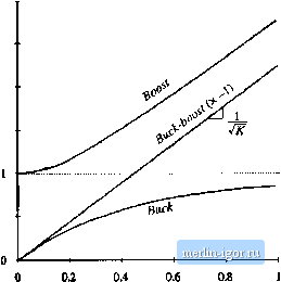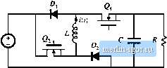 Строительный блокнот Introduction to electronics Fig, 5.19 ullage tonveisioii ratio M(D, K) of tlie boQst cuiiveiter, including both continuous and di.scontinaous conduction niudcs ![]() 0,25 0,75 These characteristics are plotted in Fig. 5.19, for several values of k. As in the buck converter, the effect of the discontinuous conduction mode is to cau.se the output voltage to increase. The DCM portions of the characteristics are nearly linear, and can be approximated as (5.54) SUMMARY OV RESULTS AND KEY POINTS The characteristics of the basic buck, boost, and buck-boost arc summarized in Table 5.2. Expressions for KyfD), as well as for the solutions of the dc conversion ratios in CCM and DCM, and for the DCM diode conduction duty cycle D are given. The dc conversion ratios of the DCM buck, boost, and buck-boost converters are compared in Table 5.2 .Summary of CCM-13CM cliaracterisiies for die liuck, boost, and txjck-boost converters Converter DCM M(D, K) DCM Dj(0, CCM M{D) Buck Boost Buck-boost (1-fl) D{1 - of (l-O) 1+1 + 4А-/0= l/l4Д/f 2 D ~ Ш §м(д/о 1 -D D 1-D with DCM occur.s for k<k ,. 5.4 Siimmary ofRe.wla and Key Points Fig. 5.20 Comparison of de conversion raiio.s of the buck-hoost, buck, atid boost converters operated in the discontinuous conduction mode. ![]() Fig. 5.20, The buck-boost characteristic is a line with slope The characteristics of the buck and the boost converters are both asymptotic to this line, as well as to the line M= I. Hence, when (iperaled deeply into the discontinuous conduction mode, the boost converter characteristic becomes nearly linear with slope I/, especially at high duty cycle. Likewise, the buck converter ohtiracteristic becomes nearly linear with the same skjpe, when operated deeply into discontinuous conduction mt)de at low duty cycle. The following are the key points of this chapter: 1. The discontinuous conduction mode occurs in converters containing current- or voltage-unidirectional switches, when the mductor current or capacitor voltage ripple in large enough to cause the switch current or voltage to reverse polarity. 2. Ctmditions for operation in the discontinuous conduction mode can be found by determining when the inductor current or capacitor voltage ripples and dc components cause the switch on state current or off stale voltage to reverse polarity. 3. The dc conversion ratio jV/ of converters iiperating in the discontinuous conduction mode can be found by application of the principles uf inductor voh-second and capacitor charge balance. 4. E.stra care is required when applying the small-ripple approximation. Some waveforms, such as the output voltage, should have small ripple which can be neglected. Other wavefin-ms. such as one or more inductor currents, may have large ripple thai cannot be ignored. 5. The characteristics of a converter changes significantly when the converter enters DCM. The output voltage becomes load-dependent, resulting in an increase in the converteroutput impedance. 116 The Discmnnuom Coiiduaioii Mode Problems * The elemenLs of Lhe buck-boosi converter of Fig. 5.21 are ideak all losses may be ignored. Your resuits for parLs (a) and (h) shoaid agree with Tabie 5.2. ![]() Fiju, S.21 lluck-biKist ctsnverter (if Piohletiis 5.1 and 5.13. (a) Show that tlie converter operates in discontinuous conduction mode when К < ff and derive expressions for К and A. . (b) Derive an expression for the dc conversion ratio VIV oi the buck-boost converter operating in discondnuous conduction mode. (c) For K=O.L plot V/V over the etitire ratige (}<.D<.[. (d) Sketch the inductor voltage and currenl wavefornis for A = 0.1 and D = 0.3. Label salient features. (e) What happens to Vat no load (H Explain why. physically. 5.2 A certain buck converter contains a synchronous rectifier, as described in Section 4.1.5. (a) Does this converter operate in the discontinuous conduction mode al light load? Explain. (b) The load resistance is disconnected (K -> °°], and the converter is operated with duty cycle 0.5. Sketch the inductor current waveform. 5J An unregulated dc input voltage varies over the range 35 V < V, < 70 V. A buck converter reduces this voltage to 28 V; a feedback loop varies the duty cycle as necessary such that the convener otitptit voltage is always equal to 28 V. The load power varies over the range 10 W<r, £ lOOO W. The element values arc: Z, = 22fdf C = 470fiF /, = 75 kHz Losses may be ignored. (a) Over what range of and load current does the converter operate in CCM? (h) Determine lhe maximum and minimum values of the steady-state transistor duly cycle. SA The transistors in the converter of Fig. 5.22 are driven by the same gate drive signal, .so thai they turn on and off in synchronism with duty cycle D. (a) Determine the conditions under which this converter operates in the discontinuous conduction mode, as a ftinciion of the steady-state duty ratio D ![]() Fig, 5,22 Walkiiis-Jtiliiistm converter of Problem 5.4. |