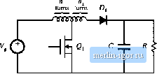Строительный блокнот Introduction to electronics [6] F. Earzegar and S.Cuk , A New Switthed-Mode Amplifier Produces Clean TKree-Piiase Power, Pro- ceedings Ninth IwermitionalSolid-State Power Conversion Conference (Powercon 9), pp. E3.!-E3.!5, Juiy 1982. (7] K. D. T. Kgo, S. Cuk, and R. D. MlDDLEBROOK, A New Flybiick Dc-[i)-Three-Pli.ise Convener wilh Sinusoidal Outputs, IEEE Power Electronics Specialists Conference. 19S3 Record, pp. 377-388. [S] R. W. Ericksok, Synthesis of Switched-.VIode Converters, IEEE Power Electronics Specitilists Confer- ence, 1983 Record, pp. 9-22, June 5983. [9] D. Mak.SiMOVIC and S. Cltk, General Properties and Synthesis of PWM Dc-Dc Converters, IEEE Power Electronics Specialists Conference, 5989 Record, pp. 515-525, June 1989. [10] M. S. .VlAKOWSKi, On Topological Assumptions on PWM Converters-A Reexamination, IEEE Power Electronics Specialists Conference, 1993 Record, pp. 145-147, June 1993. [11] E. israelsen, J. MARTIN, C. REEVE, and V. ScowN, A 2.5 kV High Reliability TWT Power Supply: Design Techniques for High Efficiency and Low Ripple, IEEE Pnwer Electronics Specialists Conference, 5 977 Record, pp. 109-130, June 1977. [12] R. Severns, A New Current-Fed Converter Topology, JEEE Power Electronics Speciali.ts Conference. 1979 Record, pp. 277-2S3, June 5979. [13] V. J. ThottuvelIL, T. G. Wilson, and H. A. Owen, Analysis and Design of a Push-Pull Current-Fed Converter, IEEE Power Electronics Specialists Conference, 1981 Retool, pp. 192-203, June 1981. [14] R. Redl AND N. sokal, Push-Pul! Current-Fed Multiple-Output Dc-Dc Power Converter wilh Only One Inductor and with 0-100% Switch Duty Ratio, IEEE Power Electronics Specialists Conference, 1980 Record, pp. 341-345, Juiie 1982. [15] p. W. Cl.vrke, Converter Regulation by Controlled Conduction Overlap, U. S. Patent 3,935,024, Febtu-шу SO, 1976, [!6] R. p. Massey and E. C. Snyder, High-Voitage Single-Ended Dc-Dc Convener, IEEE Power Electronics Specialists Cimferetice, 1977 Record, pp. 156-159, June 1977. [17] D. MakIMOVic: and S. CLK, Switching Converters with Wide DC Conversion Range, IEEE Trrtii.iac-titms on Power Electronics, Vol.6, No. i, pp. 151-157, January 1991, [IS] R. D. MlDDLEBROOK and S. CUK, Isolation and Multiple Outputs of a New Optimum Topology Switching Dc-io-Dc Converter, IEEE Power Electicmic.i Specialists Conference. 197S Record, pp. 256-264, June 13*15, 1978. [19] T. G. wilson , Cross Regulation in an Energy-Storage Dc-to-Dc Convener with Two Regulated Outputs, IEEE Power Electronic.. Speciali.its Conference, 1977 Record, pp. 19Q-199, June 1977. [20] H. Matsuo, Comparison of Multiple-OLitpui Dc-Dc Converters Using Cross Regulation, IEEE Power Electronics Speciali.its Conference. 1979 Record, pp. 169-185, June 1979. [21] k. Harada, T. Nabeshlma, and k. Hi.sanaga, State-Space Analysis of the Cross-Regulation, JEEE Power Electronics Speciali.vts Conference, 1979 Record, pp. 186-192, June 1979. [22] J. N. Park and T. R. ZALOUM, A Dual Mode ForwarjyFlybatk Convener, IEEE Power Electronic! Spe-ciiilists Conference, 1982 Record, pp. 3-13, June 19S2. [23] S. ClJK, General Topological ftoperEies of Switching Slruclures, IEEE Power Electronics Specialists Софгепсе. 1979 Record, pp. 109-130, June 1979. [24] R. SEVERNS and G. BLOOM, Modem Dc-to-Dc Swstchinode Power Converter Circuits, New York: Van NoslrandReinhold, 1985. [25] N. мон.лк, Т. UnDEL.ND, and W. ROEEINS, Pfnifr Electronics! Converters. Applications, and Design, 2 edit.. New York: John Wiley & Sons, 1995. [26] J. KASSAKIAN, M. SCHLECHT, and G. VEROHESE, Principles of Power Eleclromcs, Reading, MA: Addi-son-Wesley, 1991. [27] D. Mitchell, Dc-Dc Switchmg Regulator АпаЫ.ч, New York: McGraw-Hill, 1988. [2S] K. Kit Sum, Switch Mode Power Conversion: Basic Theory and De.sign, New York: Marcel Dekker, 1984. [29] R. E. Tarter, Solid-Stale Power Conversion Handbook, New York: John Wiley & Sons. 1993. [30] Q. CHEN, F. C. Lee. and m. M. JOVANOVtC, DC Analysis and Design of Multiple-Output Forward Converters with Weighted Voltage-Mode Comro\f IEEE Applied Power Elecrronks Conference, 1993 Record, pp. 449-455, March 1993. Problems ![]() Fig. 6,41 Tapped-inductor boost converter. Problem 6.1 Tapped-in due tor boost converter. The boost converter is sumeiimes modified as illustrated in Fig. 6.41. to obtain a larger conversion ratio than would otherwise occur. The inductor winding contains a total ot (fj + lij) turns. The transistor is connected to a tap placed ii turns from the left side of the inductor, a.s shown. The tapped inductor can be viewed as a two-winding (1:Ч2) transformer, in which the two windings are connected in series. The indactimce of the entire (n, -t- i!j) turn winding is L. (a) Sketch an equivalent circuit model Ior the tapped inductor, which includes a magnetising inductance and an ideal transformer. Label the values ofthe magnetizing Inductance and turns ratio. (b) Determinean analytical expression for the conversion ratio M = VVV,. You may assume thatthe transistor, diode, tapped inductor, and capacitor are lossless. You may also assume that the converter operates in c()ntimious conduction mode. (c) Sketch M(D) vs. D for fi, = Jij, and compare to ihenontapped { j = 0) case. Analysis of ihe DCM flyback cnnverter. The flyback converter of Fig. 6.30<d) nperates in the dlscontinu-onsconductionmode. (я) Model the flyback transfomner a.s a magnetizing inductance in parallel with an ideal transformer. Eind sketch the converter circuits during itie tliree subintervals. (b) Derive the conditions for operation in di.scontiimous conduction mode. (c) Solve the converter: derive expressions for the steady-state output voltage V and subintcrvai 2 (diodeconduction interval)duty cycle Oj. AnaJysis of the isolated inverse-SEPIC of Fig. 6.39. You may assume that the converter operates in Itie continuous conduction mode, and that all inductor current ripples and capacitor voltage ripples are small. (a) Derive