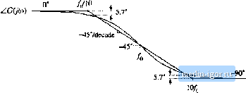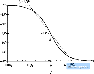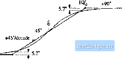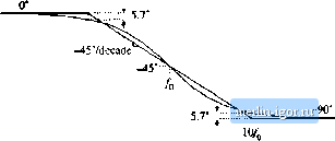 Строительный блокнот Introduction to electronics 274 Сотепег Тгапфг FuiiaioiLi ![]() Kig. 8.10 A .smipiei chiiice ( or Ibt aMirequency pliase asyiiiptulc, wliidi betier iipprnxiiiu)tes ilie curve; uvcr llic entire frequency range. II СОш) ![]() -20 dB/decade ![]() Fig. 8.f 1 Suinmary of the magnitude and philsi; Bode plni for llie single real pole. +20 dB/decade Fig. 8.12 Summafy of the magnitude and phase Bode plot for the single real zero. пади, ![]() 3. 3dB ![]() s.l,2 Single Zeru Respunse A single zero response eotitaitis a rot>t in the iiumerattir ofthe transfer funetion, and can be written in the fc)llt)wing normalized form: This transfer function hits magnitude (8.29) (8.30) At Itnv frequency,/- /д = (iijht. the transfer functitin magnitude tends to 1 =Si 0 dB. At high frequency, f ff), the transfer function magnitude tends to ( 4), А.ч illustrated in Fig. 8,12, the high-frequency asymptote has slope +20 dB/decade. The phase is given by ZC(;4i)) = tan (8.31) With the exception of a minu,4 sign, the phase is identical to Eq. (s.26). Hence, suitable asymptotes are as illustrated in Fig. s.12. The phase tends to 0 at low frequency, and to -н90° at high frequency. Over the interval/(/10 </< 1()/q, the pha.se asymptote has a slope of-H457decade. Convener Тгапфг Fwictioni Fig. 8.13 Summary of the magnltutlc and phase Bode plot for the real RHP zero. +20 dB/decade i[ cm I 0.5/ 0 dB 1 dB .J.J-HTf 3 dB ![]() ![]() 8.1 J Right Hair-Phine Zero Right half-plane zeroes are often encountered in the small-signal transfer functions of switching converters. These terms have the following normalized form: (8,32) The root of Eq. (8.32) is positive, and hence lies in the right half of the complex .v-plane. The right half-plane zero is also sometimes called a nonmininium phase zero. Its normalized form, Eq. (8.32), resembles the normalized form of the (left half-plane) zero ofEq. (8.2У), with the exception of a minus sign in the coefficient of .т. The minus sign causes a phase reversal at high frequency. The transfer function has magnitude (8.33) This expression is identical to Eq. (8.30). Hence, it is impossible to distinguish a right half-plane zero from a left half-plane zero by the magnitude alone. The phase is given by Z(7(;u)) = - tail (8.34) This coincides with the expression for the phase of the single pole, Eq. (8.26). So the right half-plane zero exhibits the magnitude response of the left half-plane zero, but the phase response of the pole. Magnitude and phase asymptotes are summarized in Fig. 8.13. |